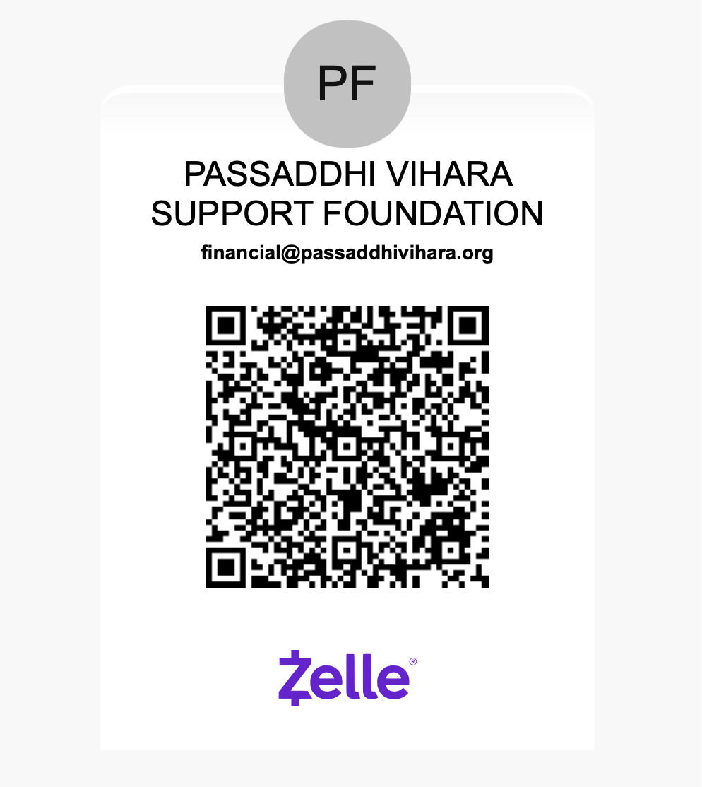 Scan the QR code below or you can log in to your bank’s mobile app or online banking portal and enter financial@passaddhivihara.org as the recipient.