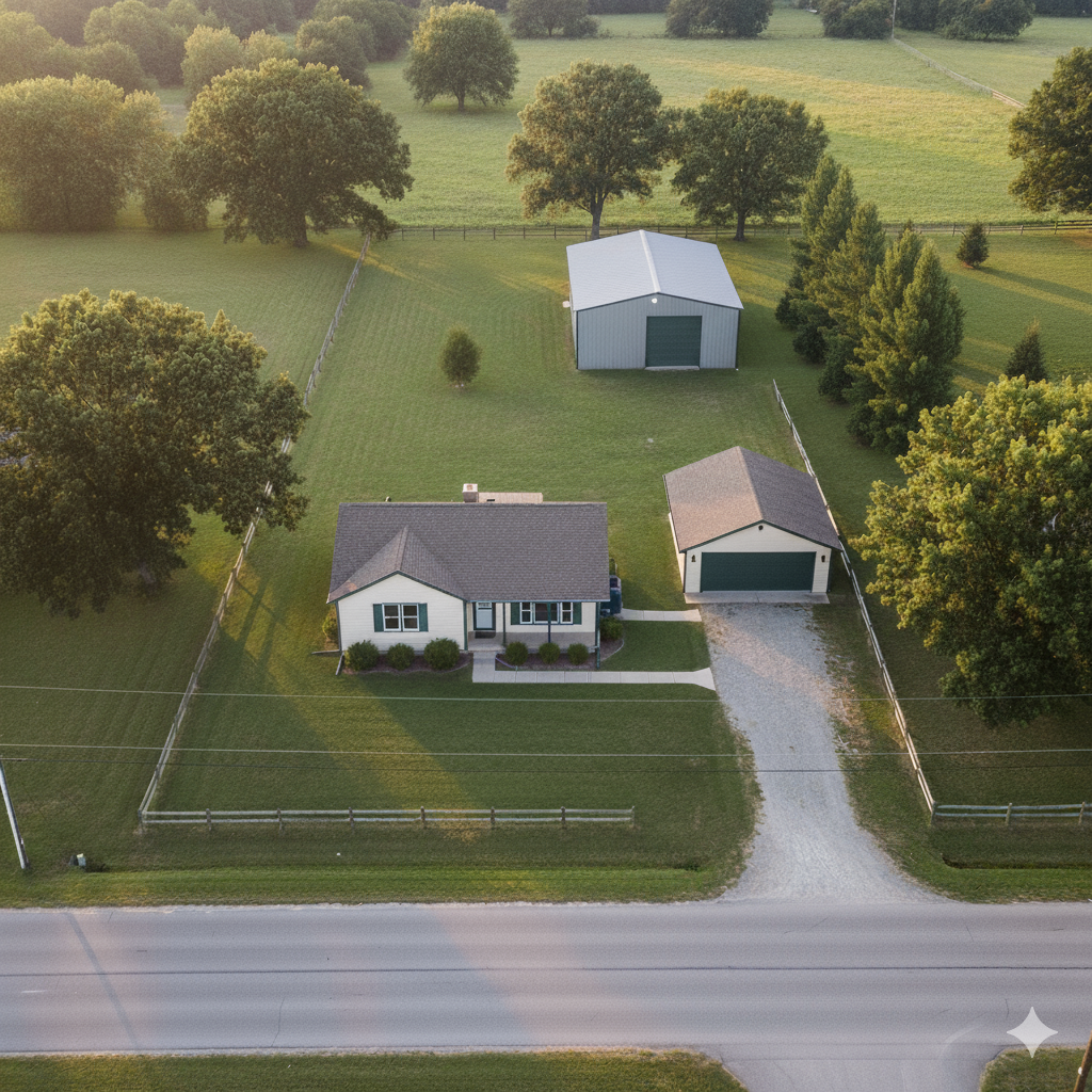 Example: ½ acre property with house, garage, and shop on one half and space for kutis on the other half of the property.